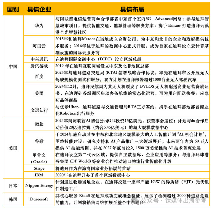 据不完全统计,截止目前,迪拜已经吸引了括阿里巴巴、银联国际、中国电信、海信、腾讯游戏、CCTV、百济神州、华为和文超集团等一批全球化布局的中国企业入驻。同时,也吸引了PayPal、英伟达、IBM、甲骨文和Meta等全球巨头。